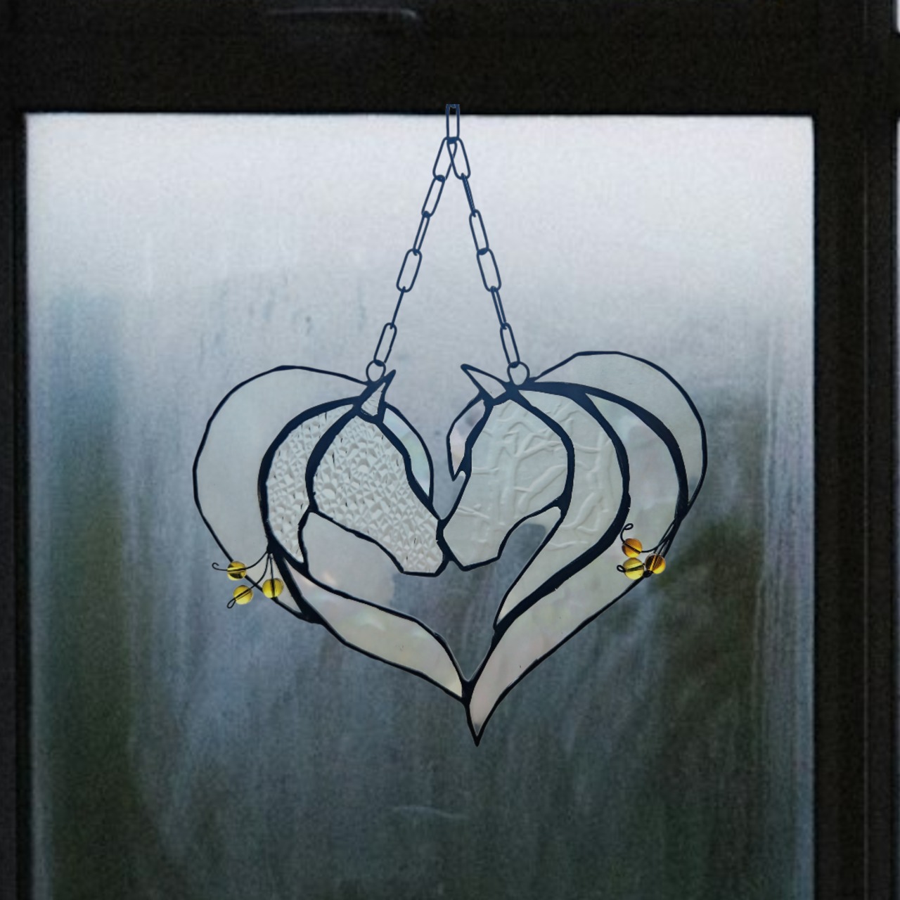 馬のハート サンキャッチャー ステンドグラス ハンドメイドギフト インテリア雑貨 誕生日プレゼント プチギフト 送料無料