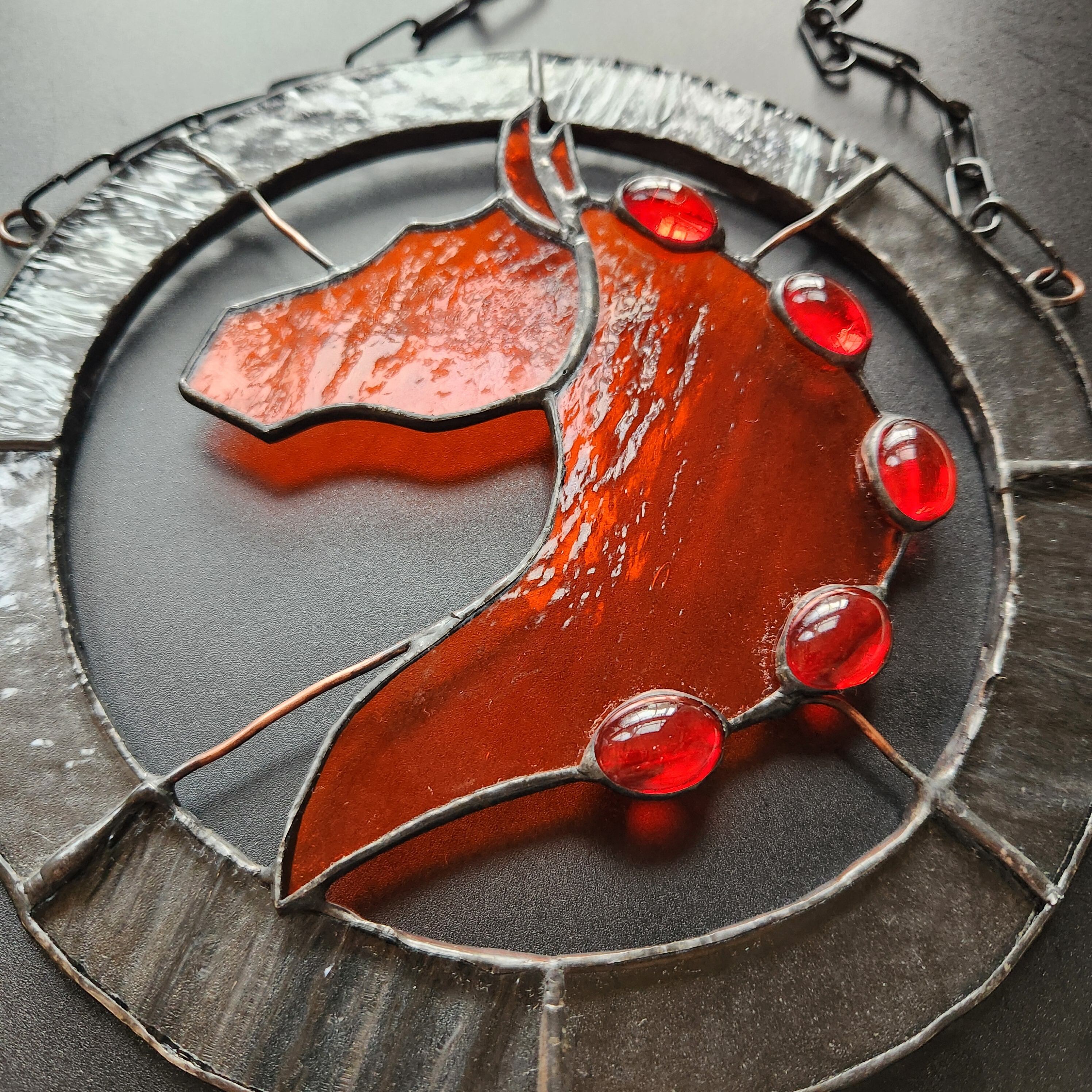 《ステンドグラス・サンキャッチャー:炎の馬》