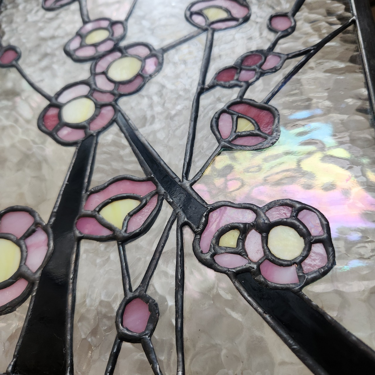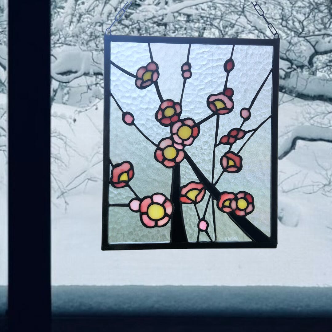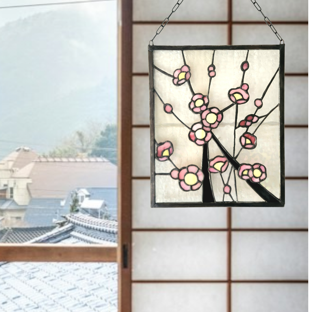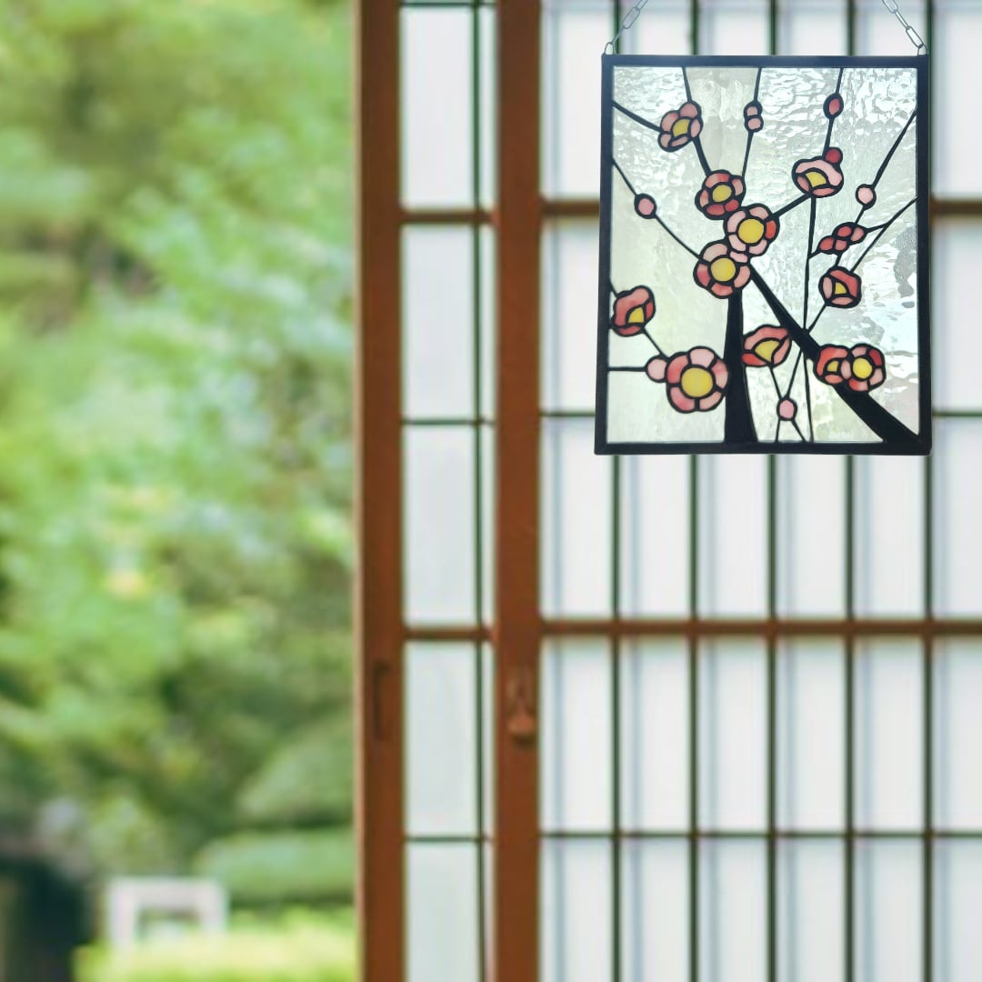 日本の春を象徴する梅の花をモチーフにしたステンドグラスパネルです。
