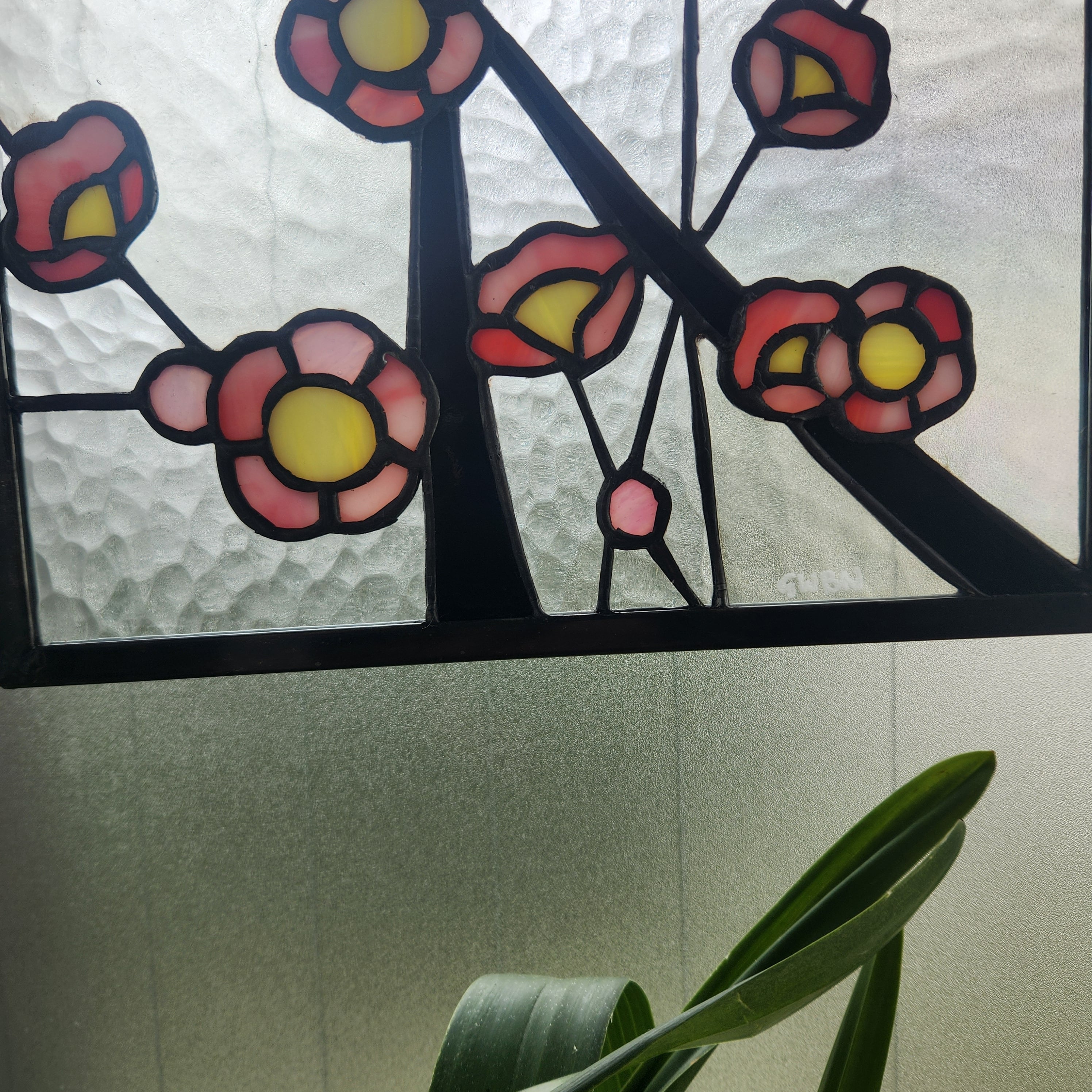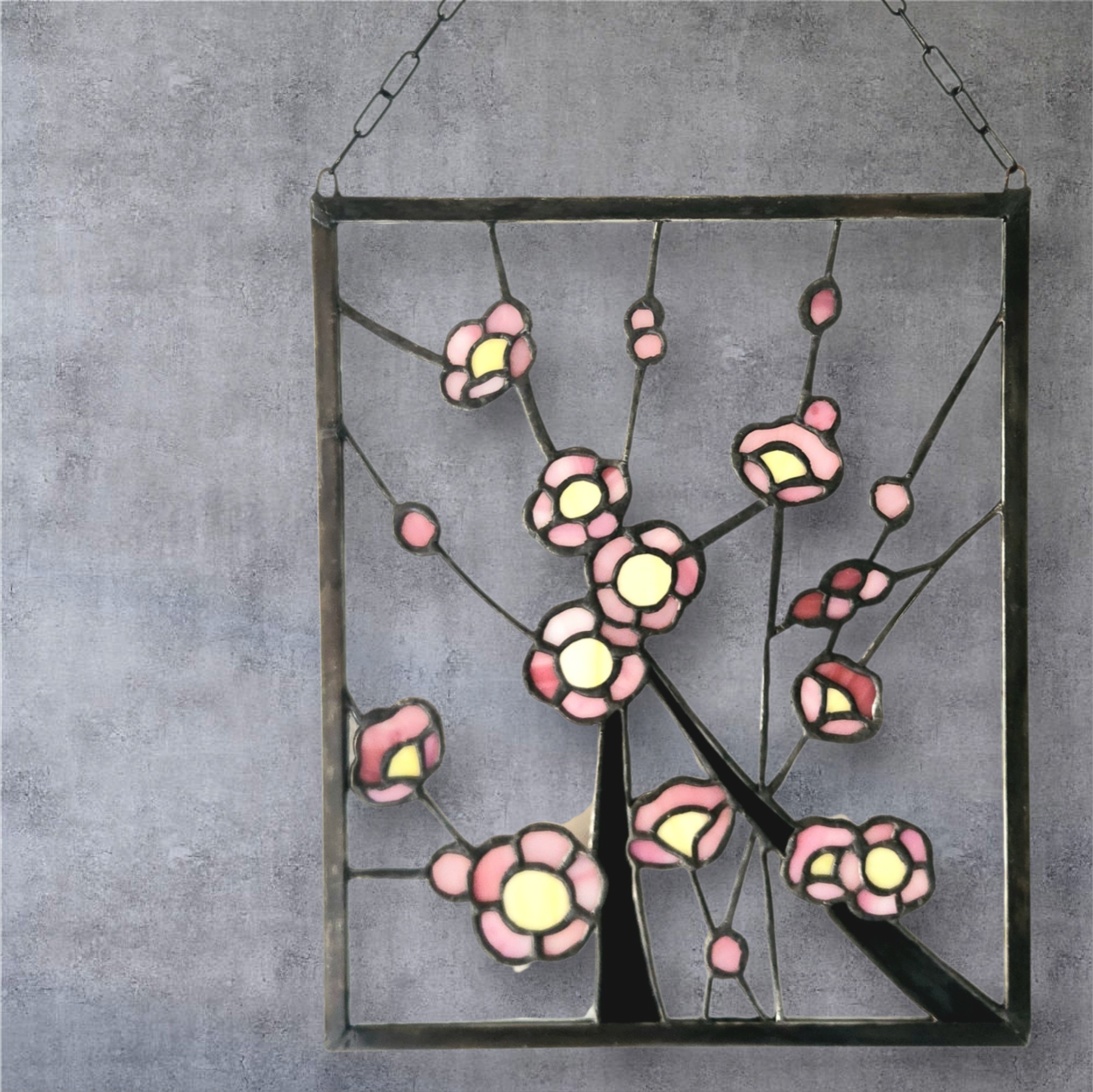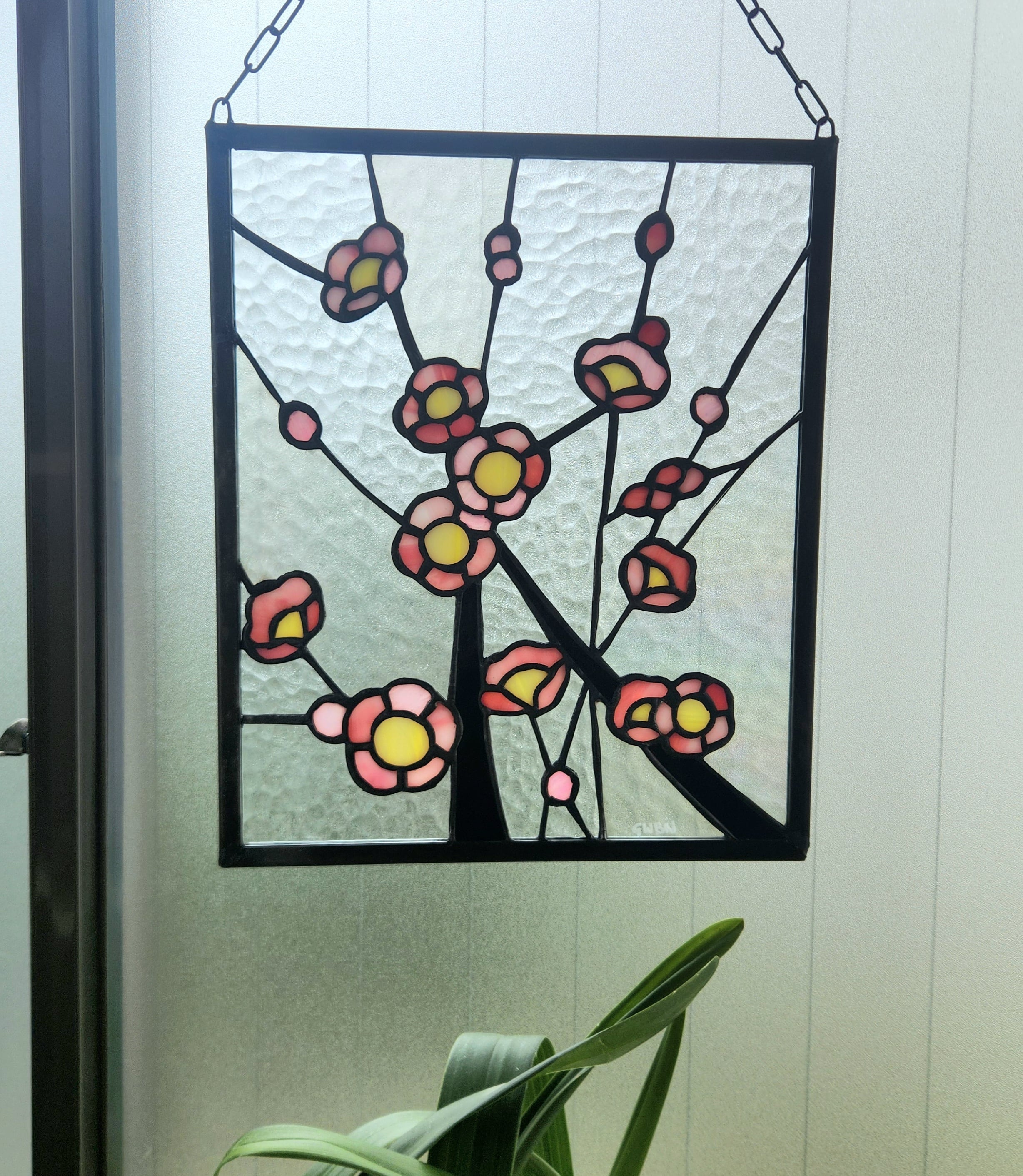 日本の春を象徴する梅の花をモチーフにしたステンドグラスパネルです。