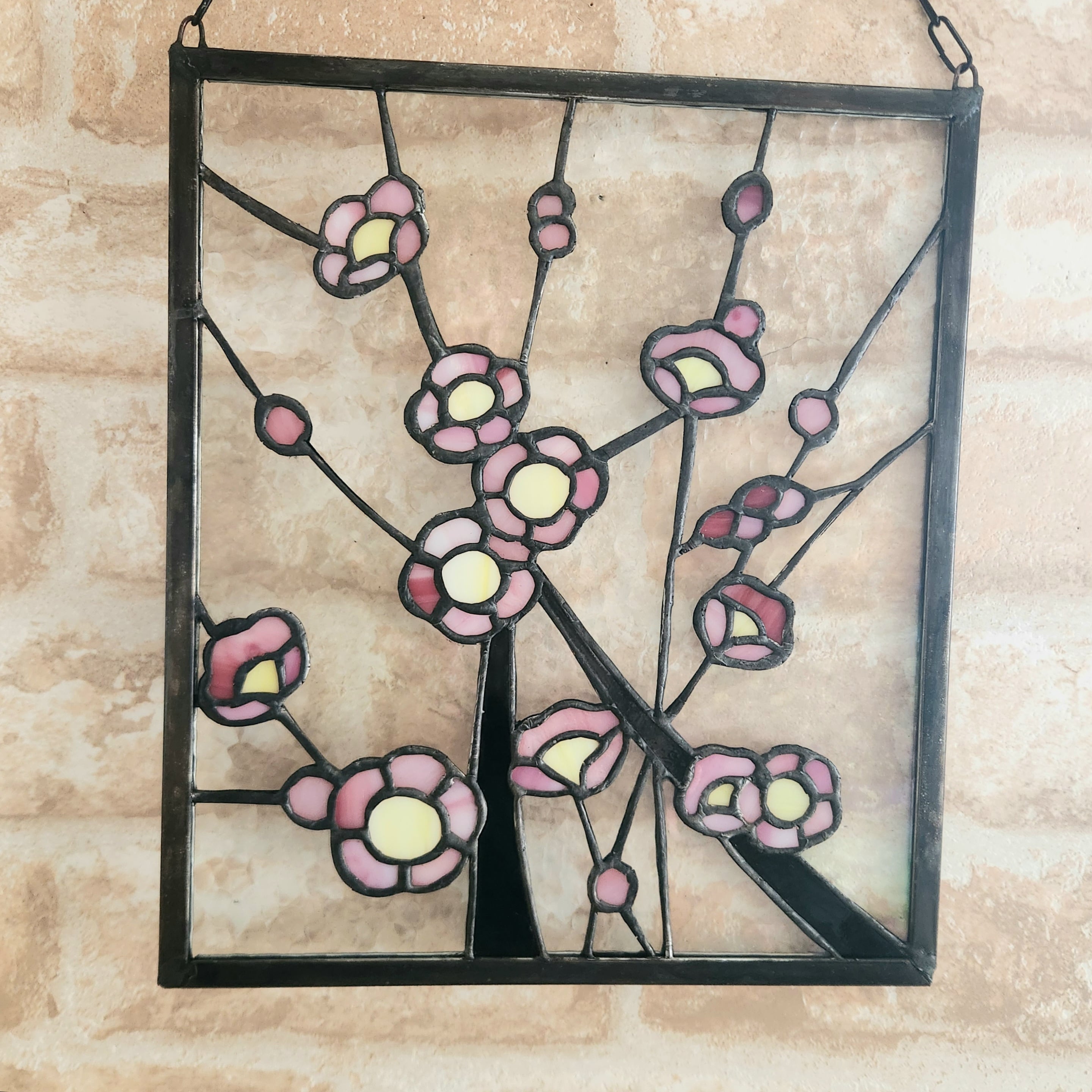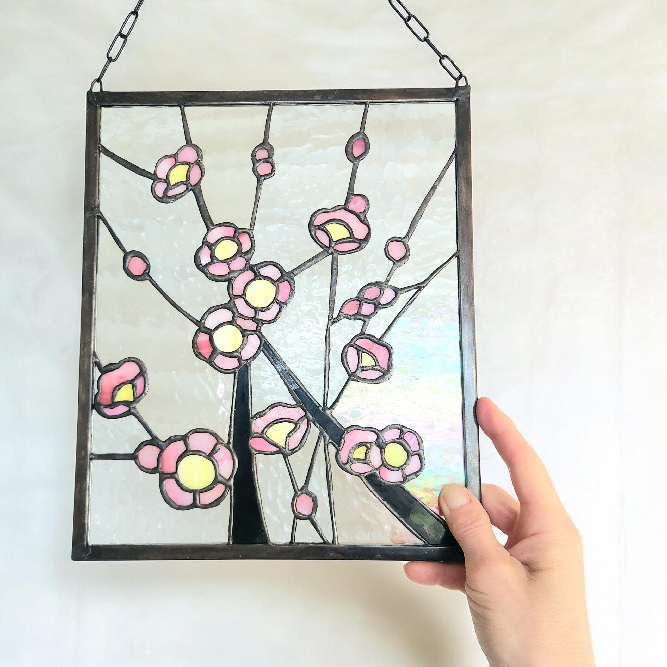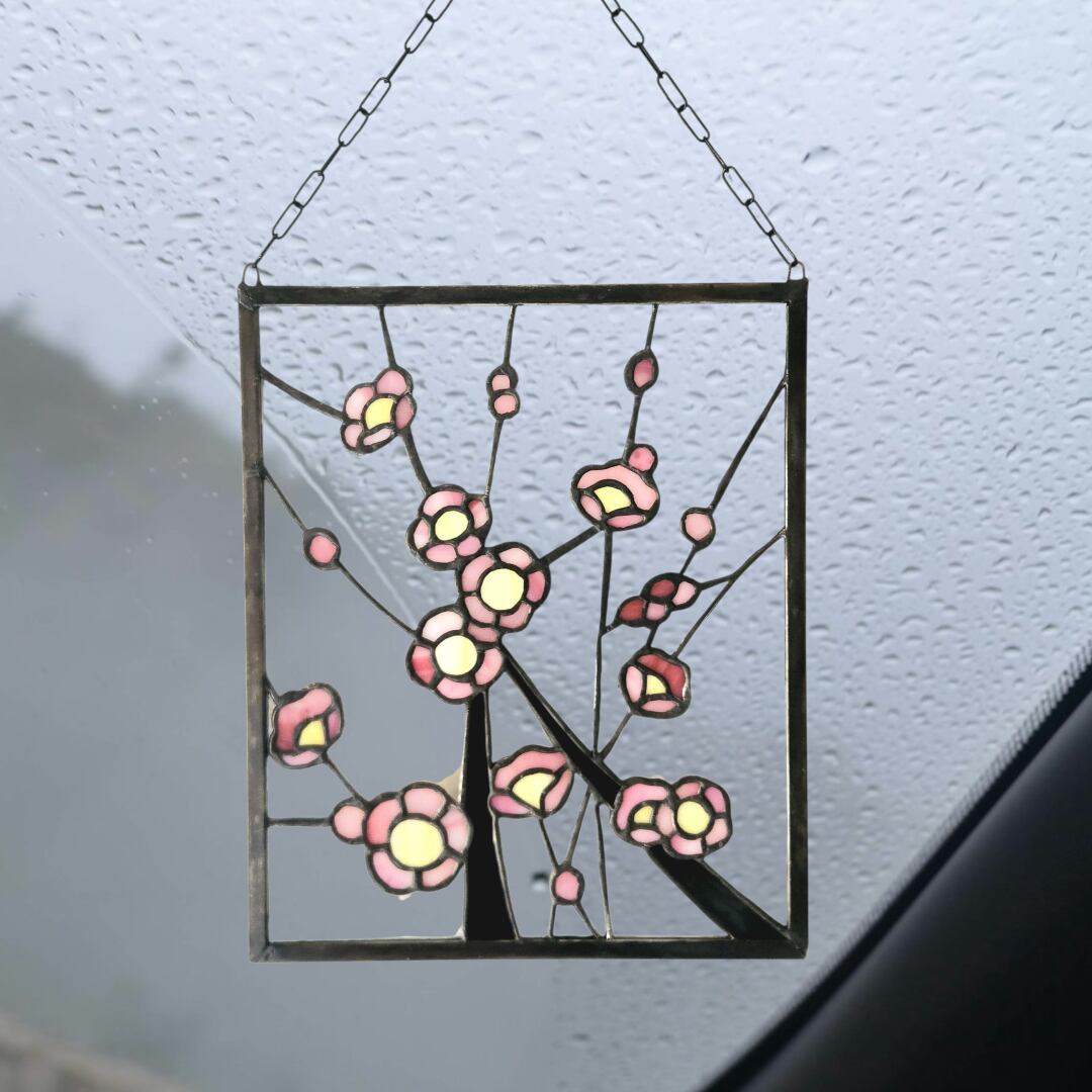 ステンドグラスパネル|梅の花|和風インテリア|窓飾り・壁飾り・サンキャッチャー|ハンドメイド ギフト プレゼント 送料無