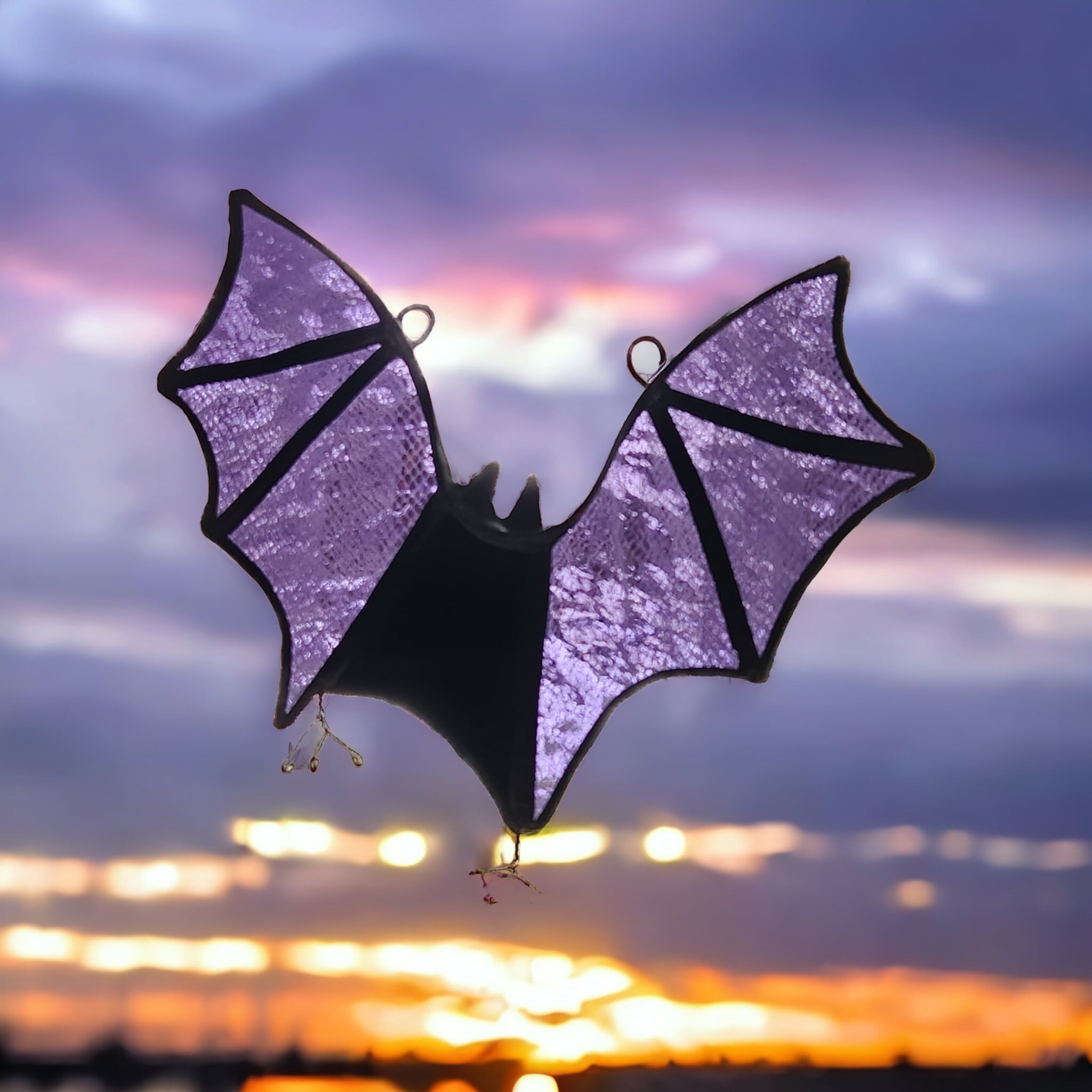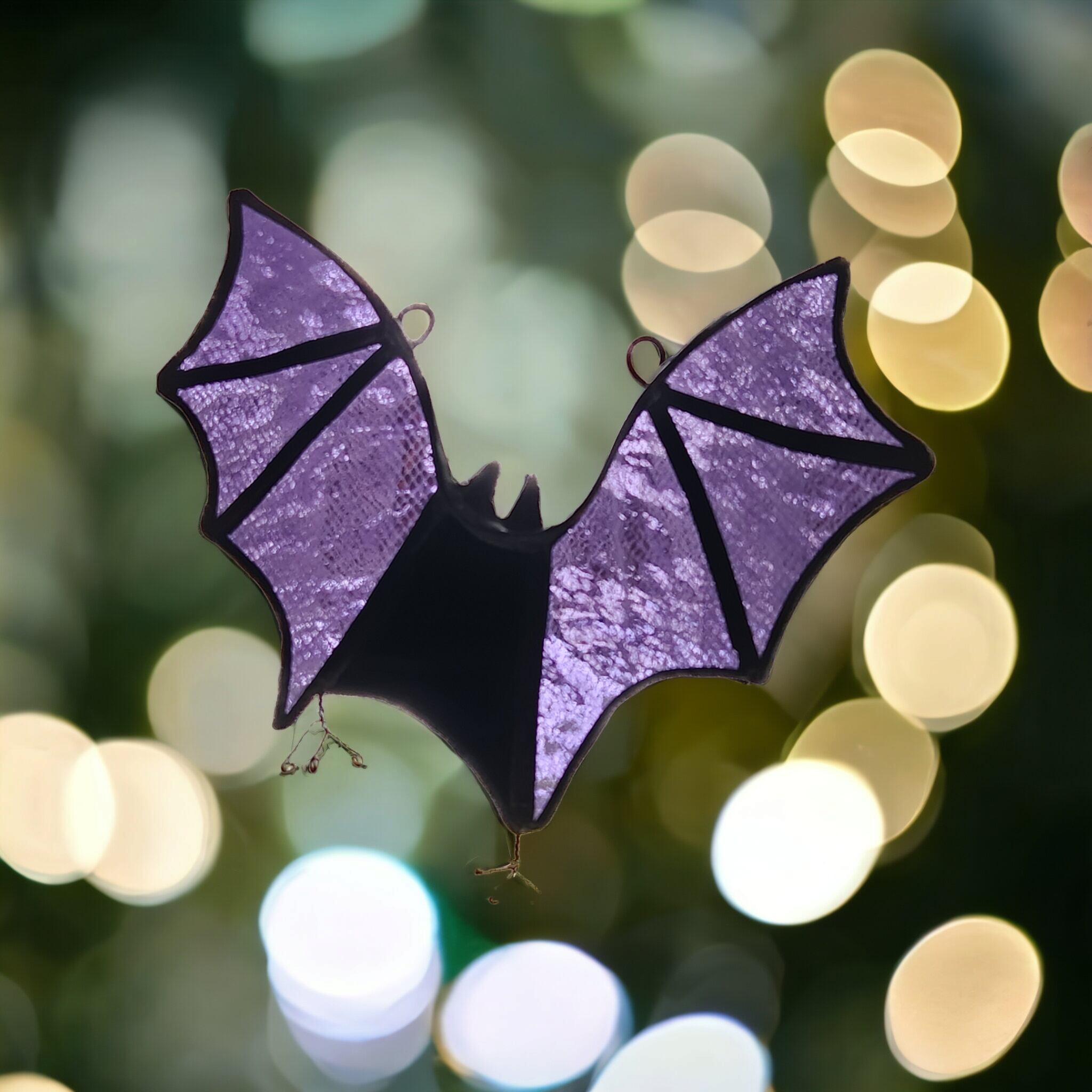 ステンドグラス コウモリ ハロウィン 飾り サンキャッチャー ハロウィンディスプレイ 紫色 ウィンドウハンギング ハロウィンギフト インテリア雑貨 オブジェ アンティーク かわいい ファミリーギフト 一点のもの ハロウィングッズ 窓飾り 秋 季節の飾り ハロウィンパンプキン